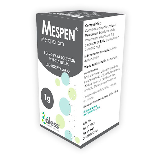 Meropenem 1 g Mespen Aless Pharmaceuticals Polvo para Solución Inyectable Caja x 1 Ampolla I.V.