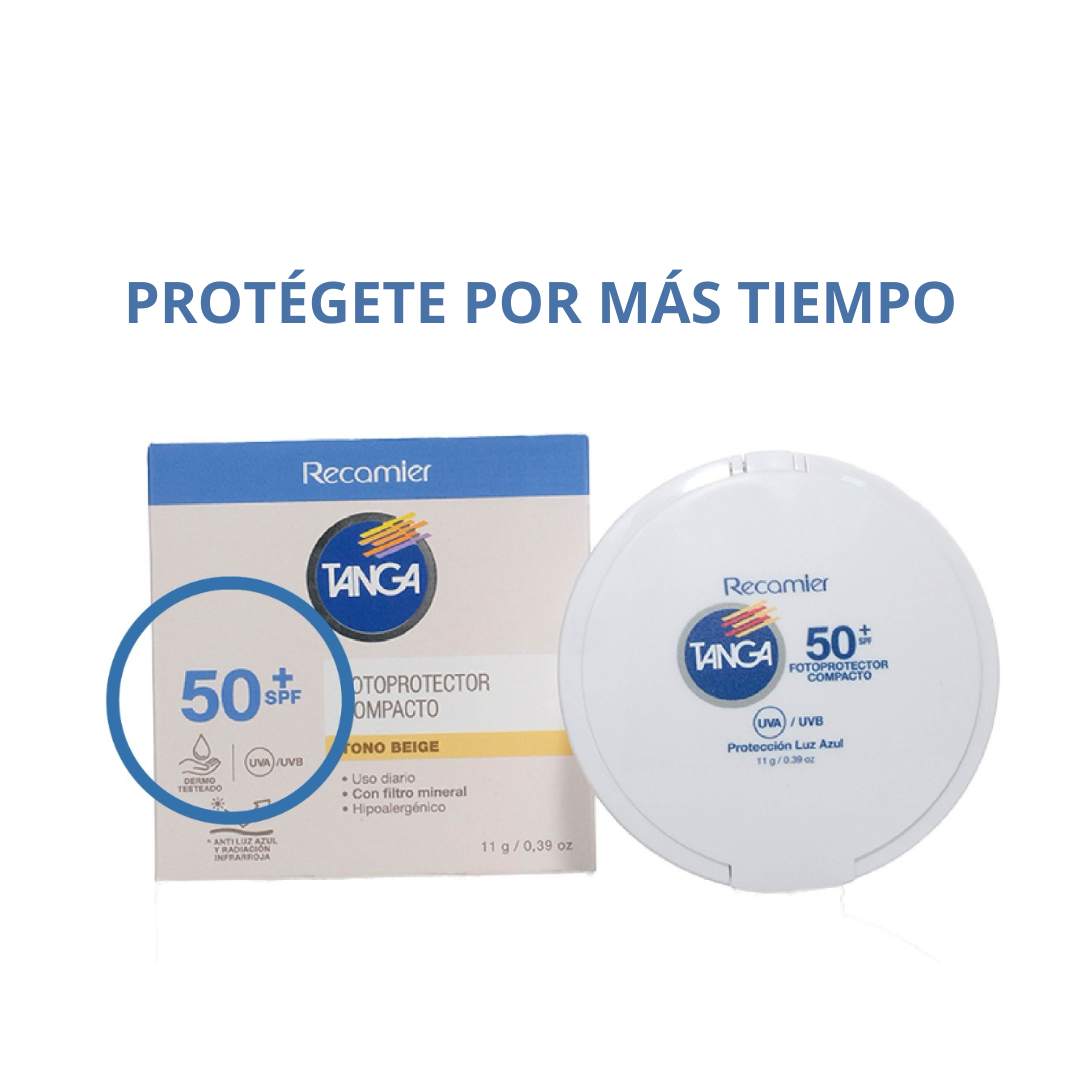 La fórmula del polvo compacto Tanga contiene vitamina E y filtro mineral que refleja la radiación solar impidiendo que penetre en la piel para prevenir el envejecimiento prematuro y la aparición de manchas en rostro.