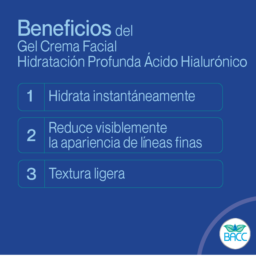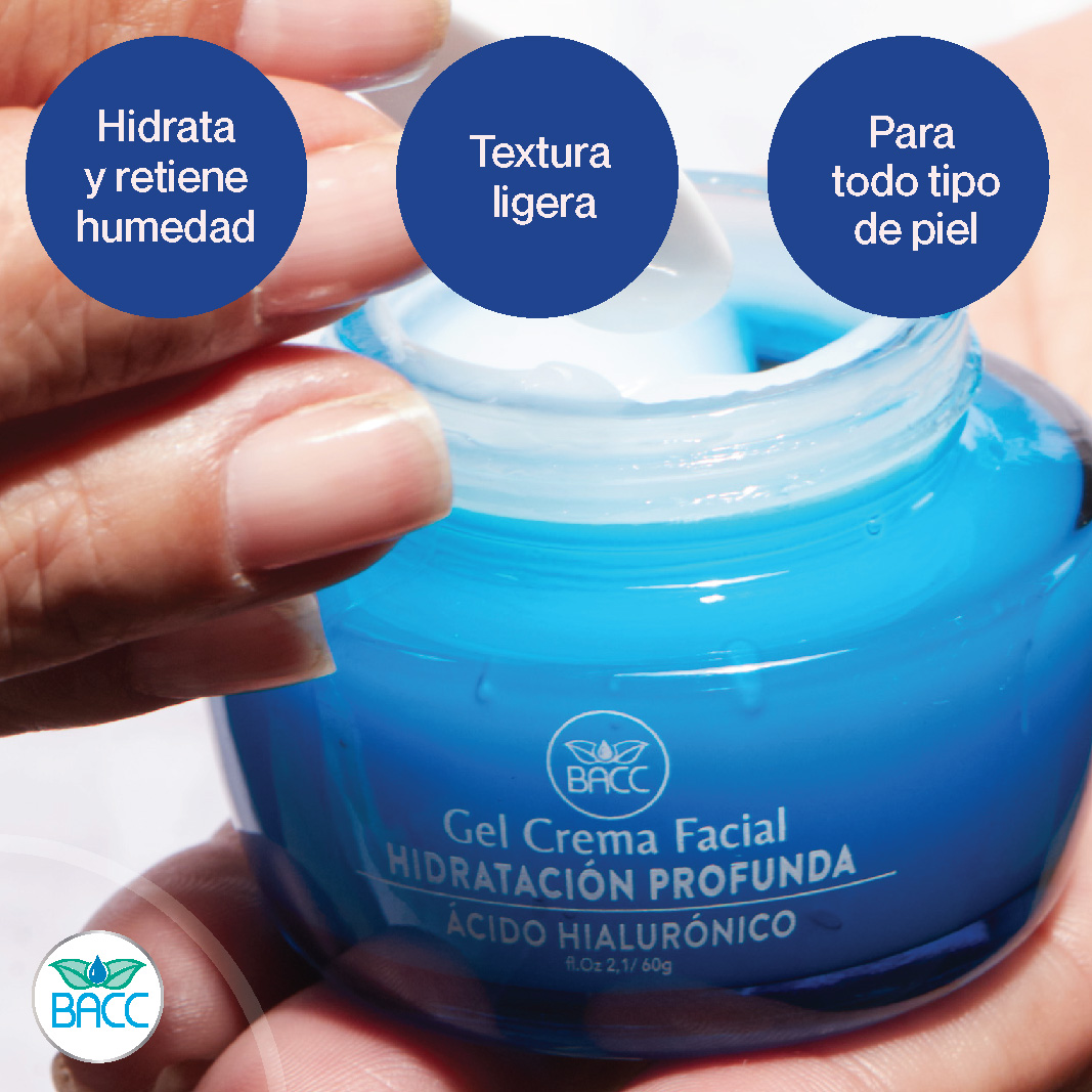 Gel crema facial hidratación profunda con ácido hialuronico.