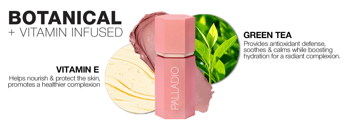 Rubor Líquido Palladio Naranja 2 en 1, para mejillas y labios Diseñado tanto para las mejillas como para los labios.