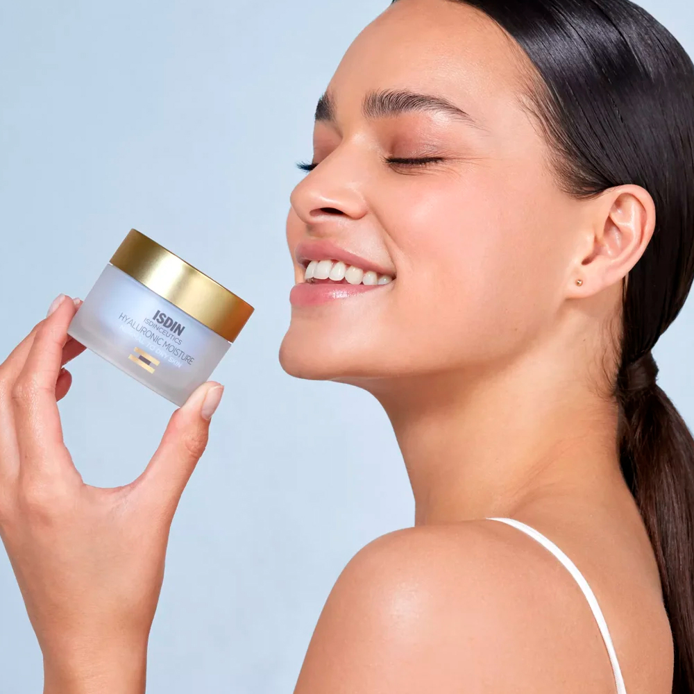 ISDIN Isdinceutics Hyaluronic Moisture Normal To Dry Skin X 50 G Crema con ácido hialurónico puro y textura ligera, ideal para la hidratación profunda de la piel normal a seca. Modo de uso Aplica Hyaluronic Moisture Normal to Dry directamente sobre la piel limpia y seca de tu rostro, cuello y escote. Masajea hasta su completa absorción.
