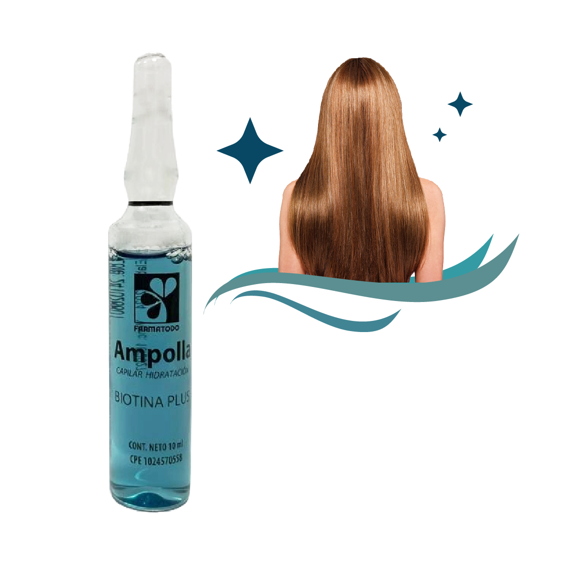 Ampolla Biotina Plus 10 ml Ampolla Capilar de Hidratación Biotina Plus 10 ml Modo de uso Aplicar sobre el cabellos húmedo de medios a puntas, No enjuagar Dejar actuar de 3 a5 minutos luego proceder con el secado