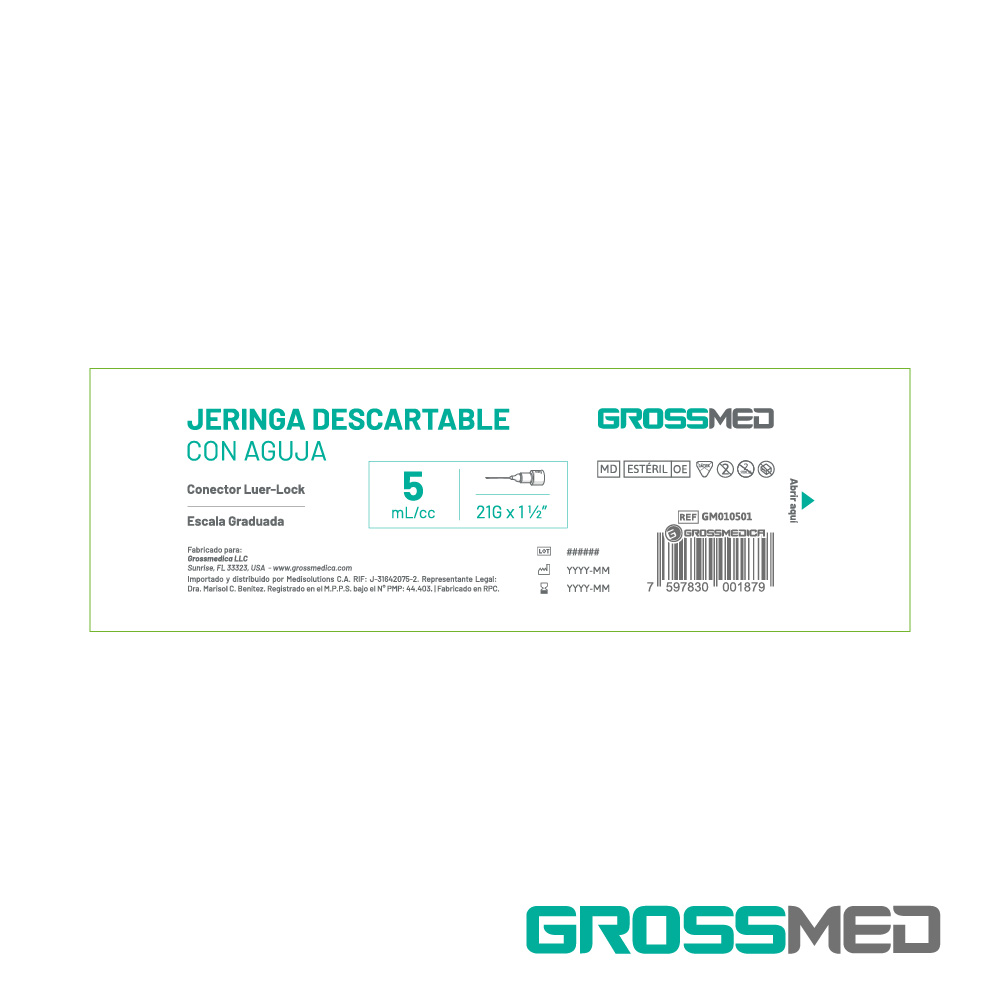 Dispositivo médico descartable empleado para administrar medicamentos o extraer fluidos. Adaptado a diversas necesidades clínicas. Es seguro, práctico y previene infecciones. Uso esencial en hospitales y centros de salud. Ofrece alta precisión en la dosificación, fácil manipulación y deslizamiento suave del émbolo. Empaque individual estéril. Diseno ergonómico para mayor comodidad. Ideal para uso hospitalario, ambulatorio o domiciliario. Modo de uso Funciona insertando una aguja en el cuerpo o recipiente, y presionando el émbolo para administrar medicamentos o extraer fluidos. Es de un solo uso y se desecha después para evitar contaminación cruzada y garantizar seguridad.