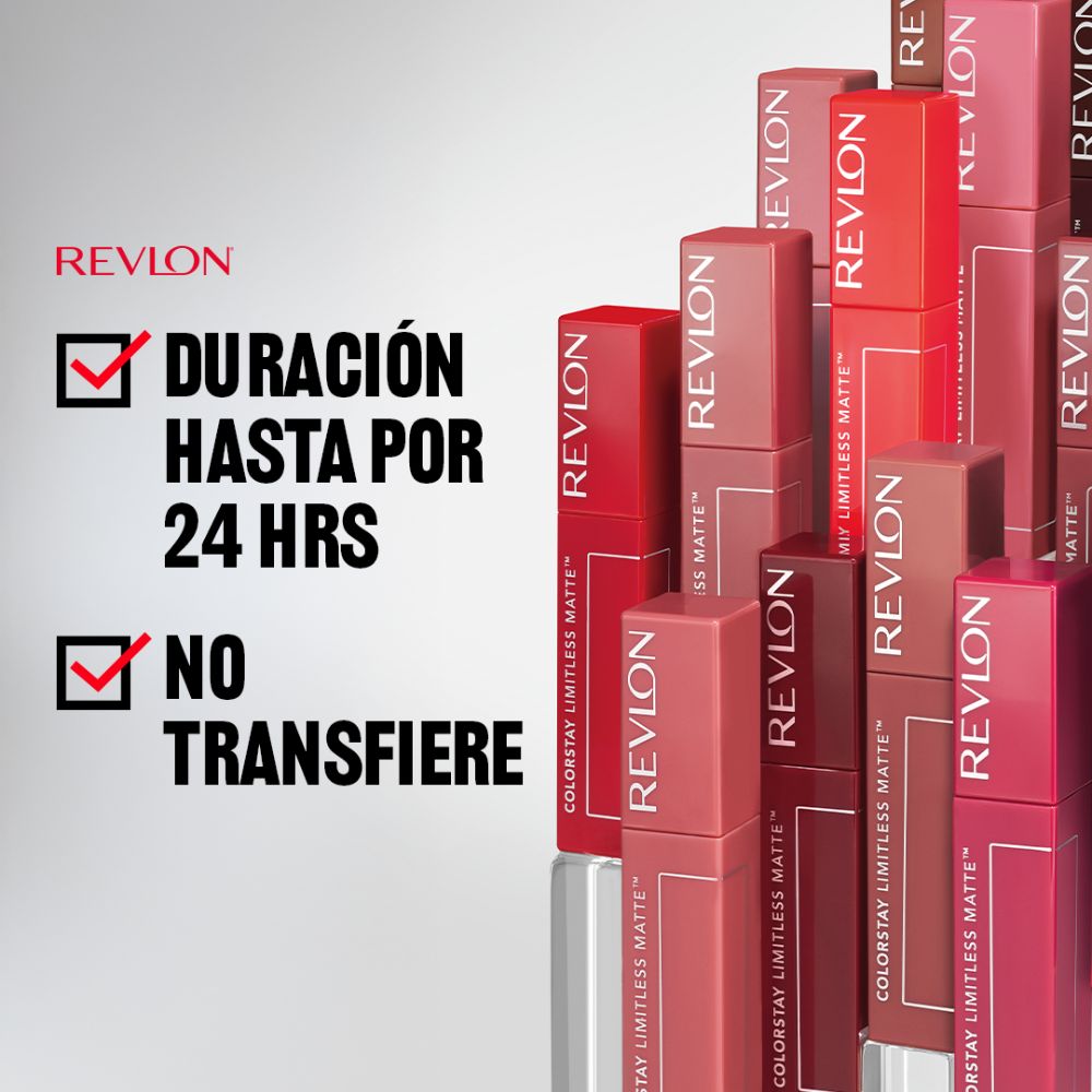 Lápiz Labial Líquido Colorstay Limitless Matte Manifest 24H de duración y máximo confort. Con ingredientes 100 veganos, es apto para labios sensibles. Formulado con triple ácido hialurónico extracto de arándano reciclado que protege los labios. Modo de uso Perfila tus labios siguiendo su contorno con la punta del aplicador. Después, rellena con una capa fina usando el aplicador que abraza tus labios. Deja que el producto se seque durante 30 a 45 segundos